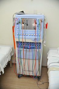 干渉波、SSP,マイクロ、頚椎牽引、腰椎牽引、ホットパック、レーザー、メドマー(空気マッサージ機)、ローリングベッド、過流浴